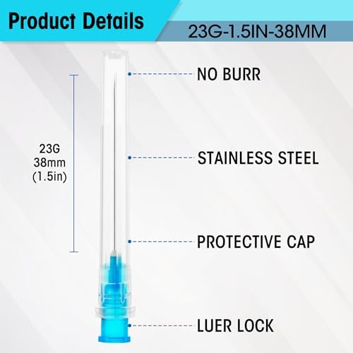 High-Quality Construction: 23gague needlas 1 inch are made of 304 stainless steel and industrial-grade polyethylene, ensuring high-quality and long-lasting durability