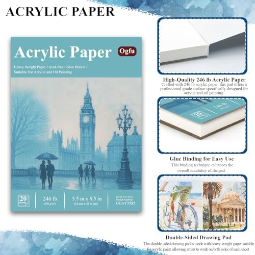 Complete Acrylic Painting Set for Everyone: Unlock your artistic potential with the Ogfu All-in-One Art Kit. This set includes a professional 5.5″x8.5″ 400GSM sketch pad and 12 vibrant acrylic paint markers, providing everything you need to start creating immediately. The thick, textured paper prevents bleed-through and warping, making it ideal for beginners learning techniques and seasoned artists developing detailed pieces.