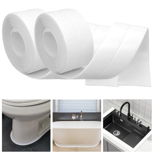This caulking tape provides a clean, watertight finish to bathroom and kitchen edges, preventing water from seeping into seams, for toilets, bathtubs, sinks, showers, floor tiles, walls, wallpapers, window trims, cabinets, kitchen countertops, and more.