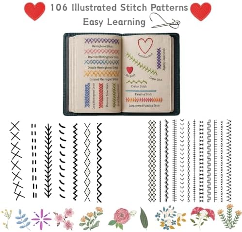 Embroidery Stitch Book Kit: 106 patterns and 86-piece tool set