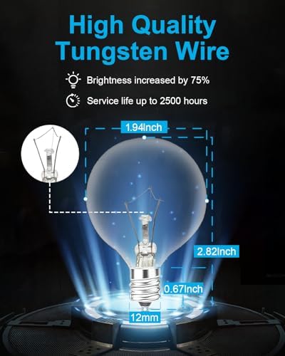 【Replacement Light Bulbs for Wax Melt Warmer】: This G50 spherical bulb uses filament heat technology to generate the necessary heat for melting wax cubes. By emitting heat through the bulb, it achieves a flameless, smokeless, and pollution-free effect, effectively eliminating fire hazards. It is the perfect heat source for melting wax cubes and is an ideal choice for wax candle lamps, fragrance warmers, wax burners, decorative vanity lights, sconces, and chandeliers.
