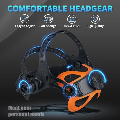 【ADJUSTABLE HEADGEAR】:The welding helmet is lightweight and features an adjustable headband, providing a comfortable fit that reduces fatigue during extended use. The customizable headgear ensures a secure and personalized fit for optimal comfort throughout your welding tasks.
