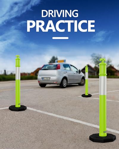 Visible Day and Night: With a 9.8 ” hidden reflective strip, the green safety delineator post cones are highly visible during the day or night. Create caution or work areas in your driveway or marks off safe places for driver training