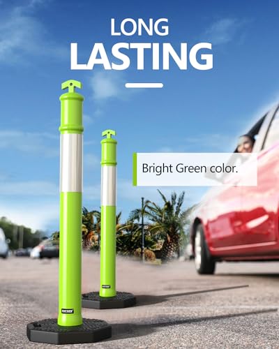 BATTIFE Delineator Post with Base 45 “, Lime Green Traffic Delineator Cones with Reflective Collar for Driving Practice, Construction Work (3 Pack)