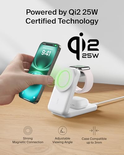 FAST CHARGE W/ THE LATEST Qi2 TECHNOLOGY: Conveniently fast charge your iPhone or Qi2 devices up to 25W on the magnetic charger. Fast charging is supported only on iOS 26 and newer, not iOS 18. MagSafe compatible for up to 5x faster wireless charging.*