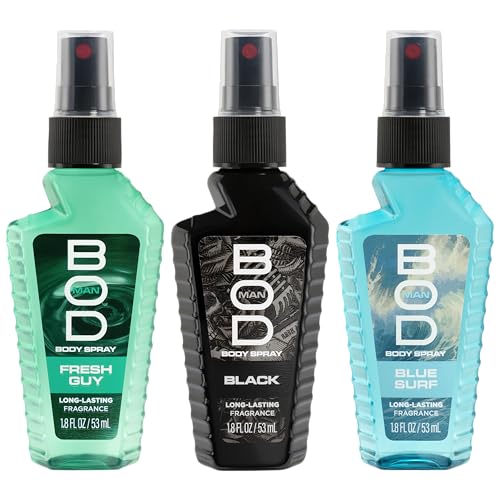 BOD man fragrance body sprays are formulated with only the highest quality oils for a fragrance to last all day. This collection of our classic fragrances are perfect for any time of day and make a great gift! This gift set contains a body spray collection with 3 scents: Black, Fresh Guy, and Blue Surf. With 3 unique fragrances, this gift set surely has a scent for every mood and occasion.