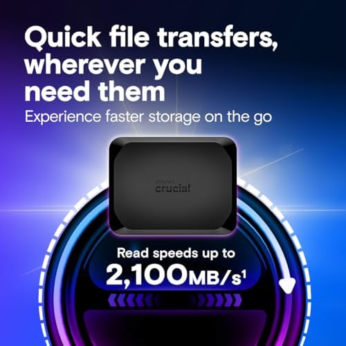 The Crucial X10 4TB Portable SSD (CT4000X10SSD9C02) provides high-performance storage with read speeds of up to 2,100MB/s, allowing for quick and efficient transfers of large files, including high-resolution photos, files, games, backups and videos. It is twice as fast as the Crucial X9! With its 4TB storage capacity, this external SSD is perfect for professionals, content creators, and gamers who need ample storage for their growing digital libraries. Built for portability and durability, the Crucial X10 is compact and lightweight, making it easy to carry wherever you go. Its IP65-rated dust and water resistance and drop protection from up to 9.8 feet ensure that your data remains safe in even the toughest conditions, whether you’re traveling, working outdoors, or in harsh environments. The Crucial X10 is compatible with a wide range of devices, including PC, Mac, Android, and more, making it easy to transfer files across multiple platforms using USB-C connectivity. This combination of speed, capacity, and ruggedness makes the Crucial X10 4TB Portable SSD an excellent choice for users who need fast, reliable storage that can handle large file sizes and the demands of travel. With 45 years of memory and storage leadership, Micron engineered this external drive with rigorous testing and professional quality in mind.