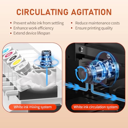 🆕Smart Ink Systems – Effortless Operation, Flawless Results:The automatic ink suction and waste ink reset functions ensure uninterrupted printing, while the white ink circulation and stirring systems reduce print head clogs and deliver consistent, vibrant colors.