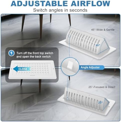 Adjustable Air Vent Deflector for Register Grille – The integrated adjustable floor vent deflector lets you direct airflow exactly where you need it. It smoothly redirects air away from sofas, beds, desks, or other furniture—to eliminate uncomfortable drafts while maintaining proper room ventilation