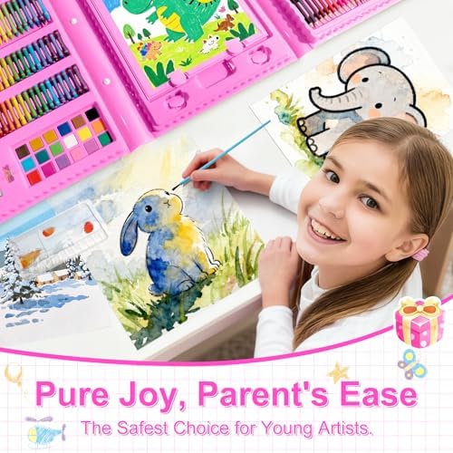 PERFECT IDEAL GIFT:A premium art set ideal for birthdays, Children’s Day, Christmas and Thanksgiving. It works great as a gift for 4-12 year old girl—whether it’s a thoughtful choice for a 4-12 year old girl’s birthday, a creative surprise for Children’s Day, or a warm Christmas gift. It’s also an excellent 5 year old girl gift, fitting perfectly into these festive occasions to bring joy to little artists. A thoughtful gift for kids and art-loving families, combining practicality and lasting sentimental value.