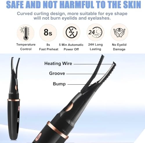 Quick Natural Curling – The heated eyelash curler can fast heat up within 10s, creating a perfect natural curling eye makeup quickly without crimping or pinching. Lasting for 24 hours