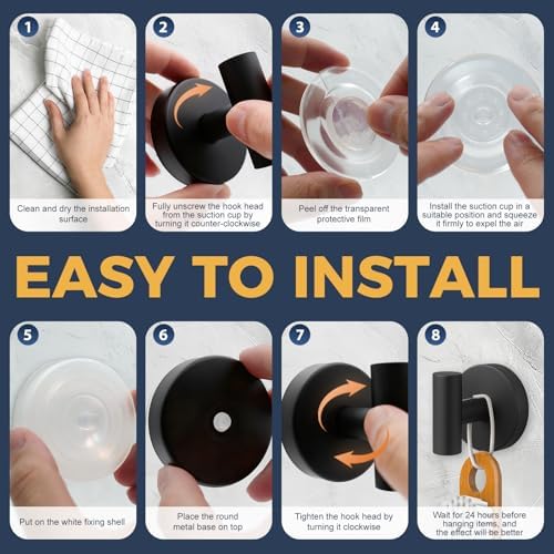 【Tool-Free & Reusable Installation】 No drilling required—simply press and twist to install.These suction cup hooks can be easily set up or repositioned without causing any damage to your walls.