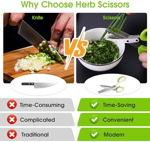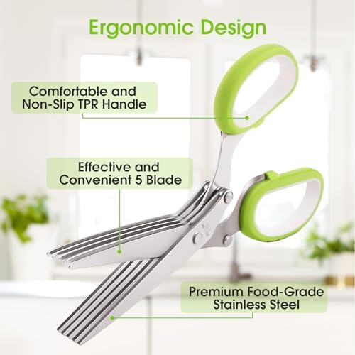 VERSATILE – The multifunctional 5 blades herb cutting scissor is easy to use for cutter fresh herbs, mint, rosemary, sage, cilantro, parsley, basil, etc.