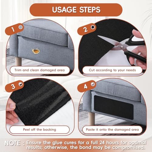 WIDE APPLICATION : As an ideal partner for fabric repair, this couch patch repair fabric can firmly bond with various materials such as cotton, canvas, nylon, vinyl, and linen. Easy to use, safe and environmentally friendly, widely applicable to sofas, chairs, cushions, pillows, backpacks, handbags and various home textile products