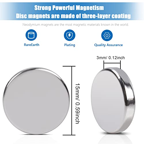 POWERFUL MAGNETS】Neodymium Disc Magnets Size: 15x3mm/0.6*0.12inch, provide permanent magnetism and are more durable than other magnets. Great for crafting, map magnets, photo walls and woodworking projects,etc.