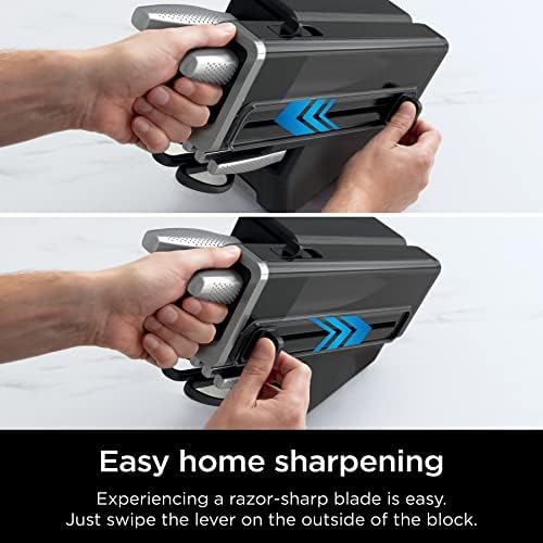 EASY HOME SHARPENING: Easy, foolproof sharpening ensures you’ll never experience the frustration of a dull knife again. All you do is swipe the lever on the outside of the block.