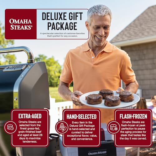 ACHIEVE GIFTING GREATNESS: Elevate your gift-giving with the Omaha Steaks Deluxe Gift Package, the ultimate choice for gourmet gifting. Perfectly curated for any celebration, this gift basket is a luxurious present that’s sure to impress.