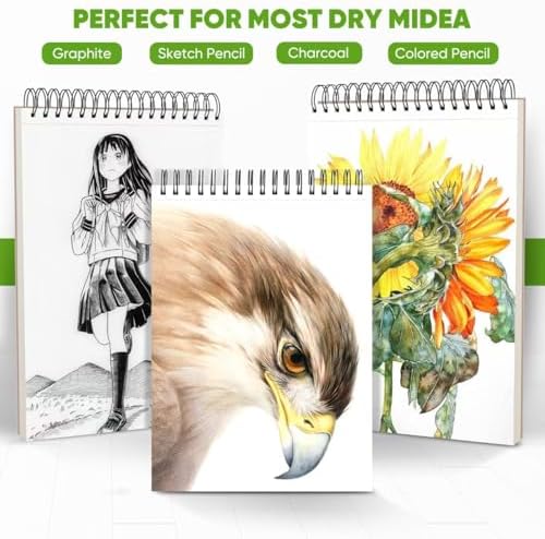 High-Quality Paper: High-quality drawing pads and sketchbooks with a 9 x 12-inch size are ideal for artists of all skill levels. Each sketchpad contains 100 sheets, for a total of 100 high-quality paper sheets. Good texture for sketching and drawing. A lovely paper book gift for anyone who likes to write, paint, illustrate, sketch, or create art. Graphite pencils, colored pencils, charcoal, pens, soft oil pastels, sketching sticks, and more can all be used with this sketchbook