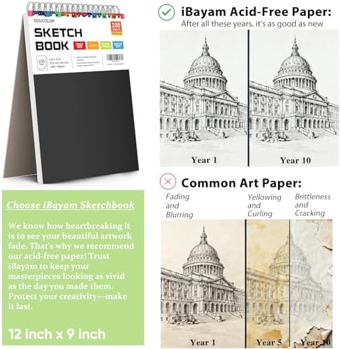 Be the first to review “Soucolor Sketch Book, Spiral Bound Acid-Free Sketchbook with 68lb/100gsm for Paper Painting, Drawing, Writing, Artist Sketching Pad for Kids, Adults & Teens, 100 Sheets (Black, 9 x 12 Inch, Pack of 1)”
