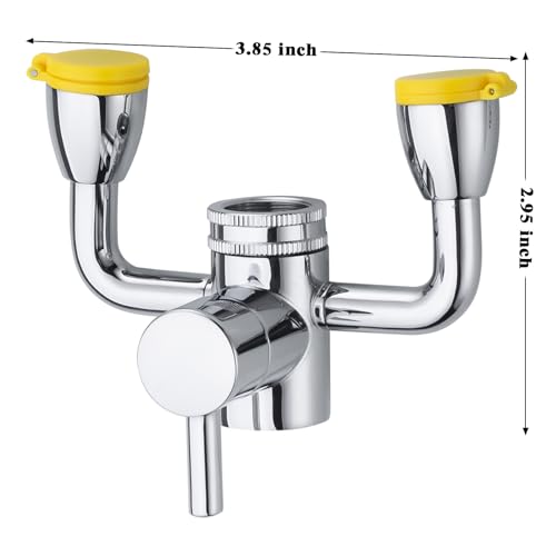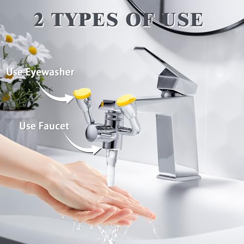 TIDYENDURE Eye Wash Station Yellow, Faucet Mounted Eyewash Station with Cover, Emergency Eye Wash Station Sink Attachment, Eye Wash Kit, Eye Wash Unit for Lab, Factory, Industry Site, Workshop, Office