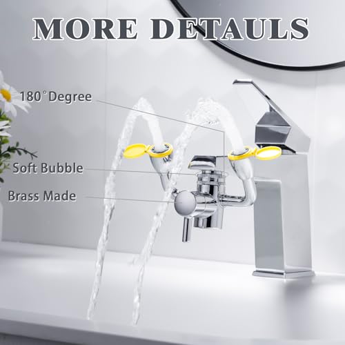 【High Quality】 Eye wash and attachment are constructed from polished chromed solid brass and stainless steell. smoothly, ensuring anti-corrosion and longevity. The eyewash aerator delivers a soft bubble stream and multi-layer filtration to remove impurities.