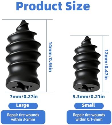 【Two Sizes for Total Versatility】This kit includes two practical sizes: small (0.21″ x 0.46″) and large (0.27″ x 0.5″). Whether addressing a minor nail puncture or a larger tear, the appropriate plug can be selected to effectively seal various types of tire damage, ensuring reliable performance across diverse conditions.