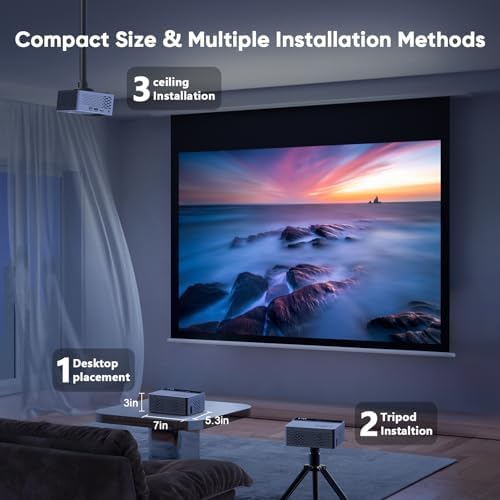 【Portable Mobile Home Cinema】The V08 movie projector provides a minimal display area of 32” to a maximum 220” image with projection distances between 1.5-6m. Aspect Ratio: 4:3/16:9, Contrast Ratio: 5000:1, Lamp lifetime: 60,000 hours. It enables excellent playback of movies, TV shows, video games and can be set up conveniently. Our newly improved 2023 uniform illumination method provides the optimal visual experience, ensuring no dark areas are present along the edges of the displayed image.