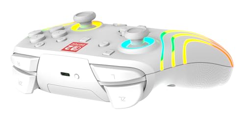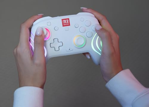 Brighten up your gaming experience with the Afterglow Wave Wireless RGB Gaming Controller for Nintendo Switch™ 2. This controller also works with Nintendo Switch™, Nintendo Switch™ Lite, and Nintendo Switch™ – OLED Model. Designed for players of all ages, this controller is perfect for those who want to add a burst of color and excitement to their gameplay. With eight fully customizable RGB LED lighting zones and four dazzling preset modes, you can create a look that matches your style, mood, or favorite game. Choose a soft ambient glow for a relaxed feel or unleash an electrifying wave of colors for a more dynamic effect.