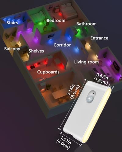 【Two Modes & Long-lasting】Our RGB & warm white motion sensor night lights feature both motion sensor mode and always-on mode. In motion sensor mode, each stair lights indoor can last up to 2 months on a single charge. The multi color motion sensor lights indoor automatically detect motion and turn on or off based on activity, switching off after 20 seconds of inactivity. In always-on mode, color changing night light motion sensor can run continuously for up to 12 hours