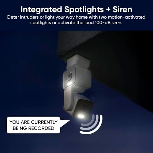 Integrated Spotlights + Siren — Deter intruders or light your way home with two motion-activated spotlights. Activate the loud 98db siren for extra “get outta here” power.